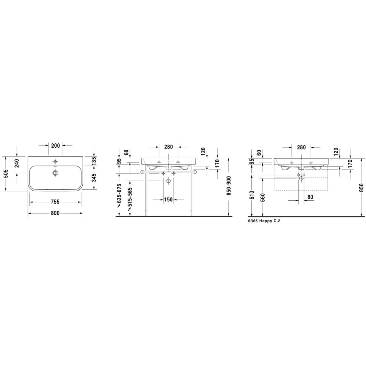 Duravit Happy D.2 lavabo 80x50.5 cm rettangolare da mobile bianco 23188000001