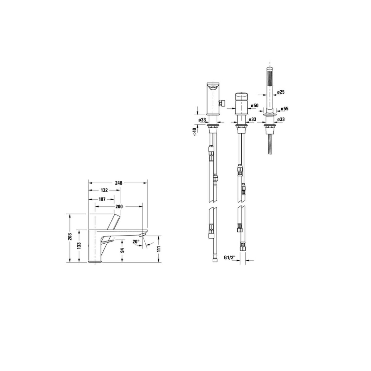 Duravit Wave rubinetto per vasca e doccia bordo vasca cromo WA5260000010