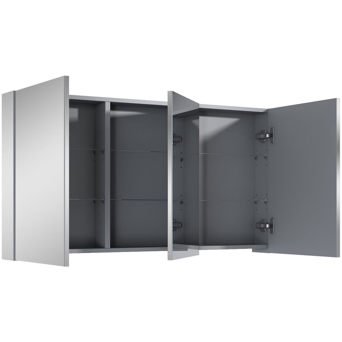 Armadio a muro da 120 cm con specchio e fianchi a specchio. 3 ante universali (destra o sinistra), dotate di 6 ripiani regolabili. Realizzato con materiali di alta qualità, cerniere rimovibili con funzione soft-close. Interno del mobile in elegante colore grigio.