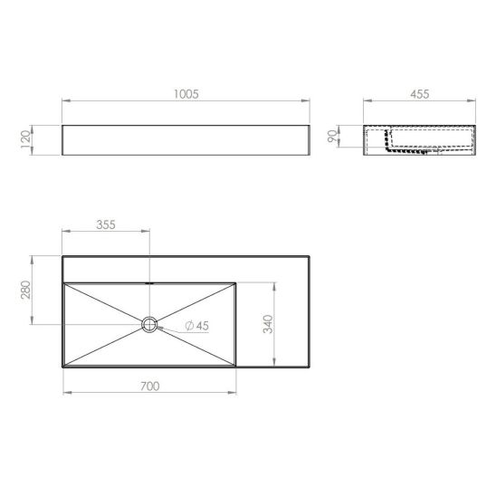 Posizione della vasca del lavabo: sul lato sinistro