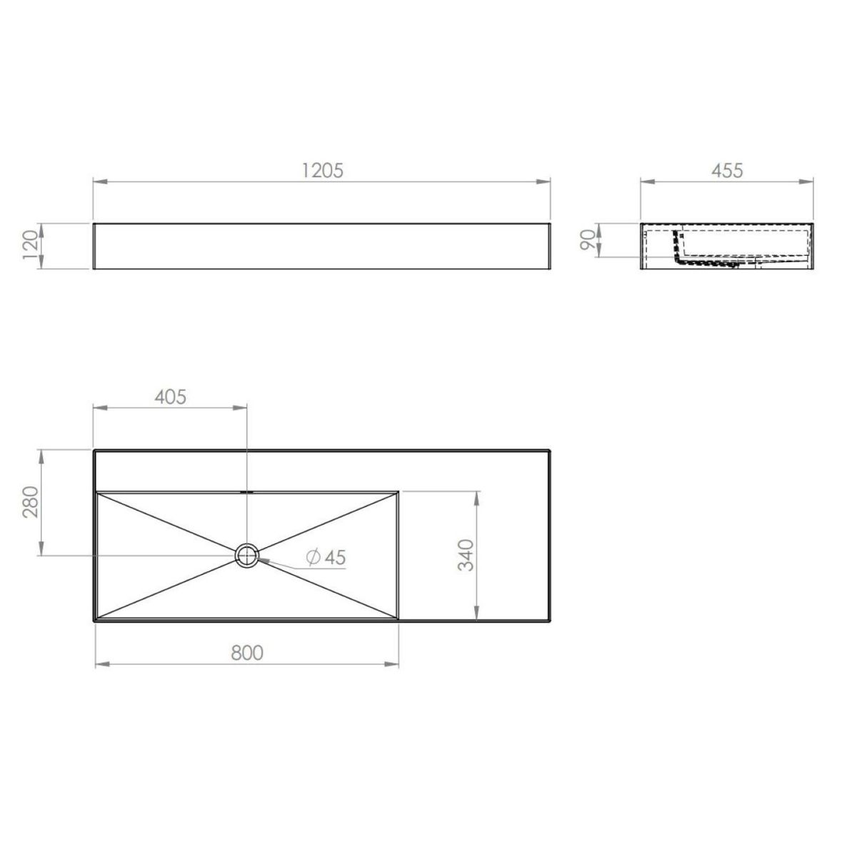 Elita Level lavabo 120.5x45.5 cm rettangolare a parete nero RE041461197160