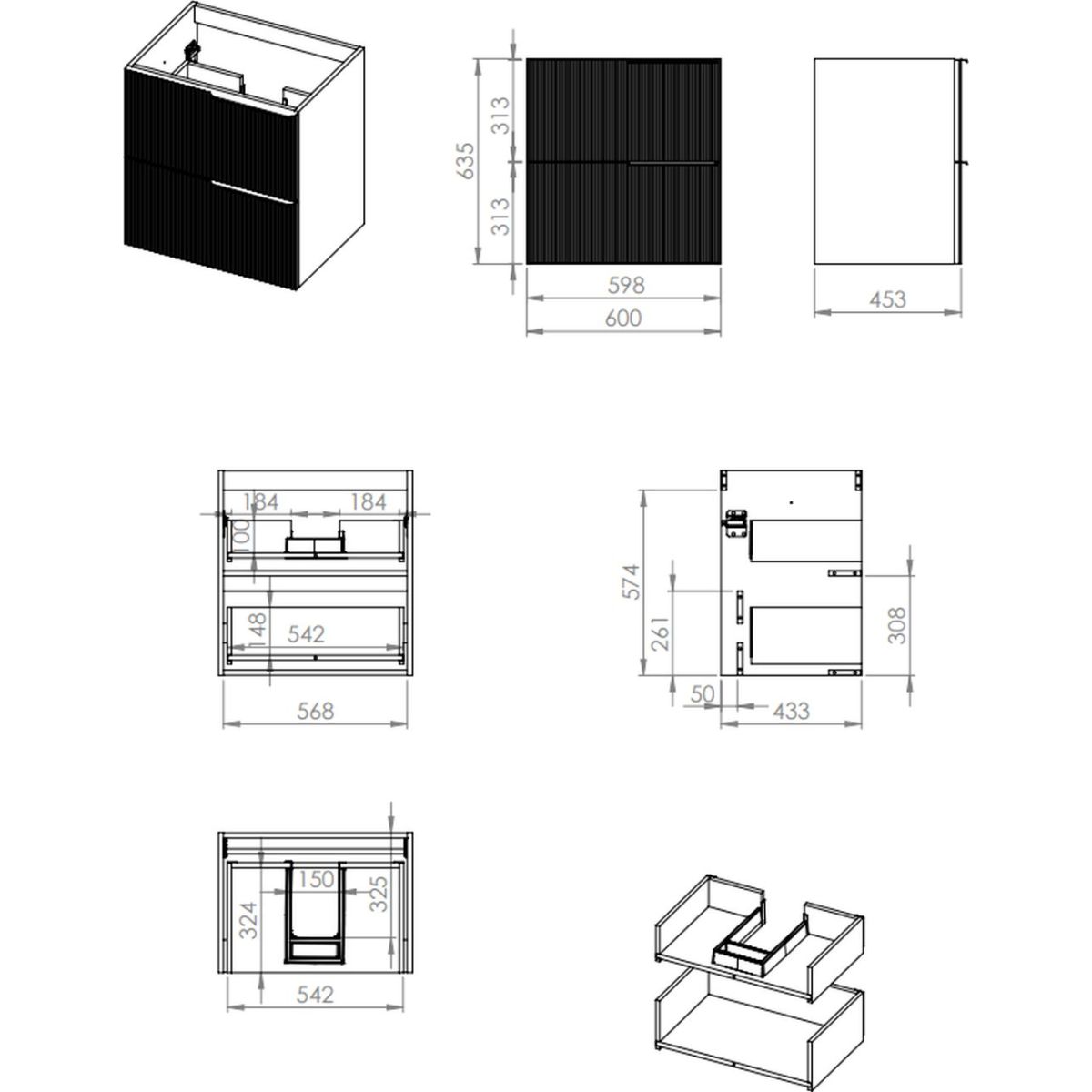 - frontale e mobile in cartone laminato da 16 mm