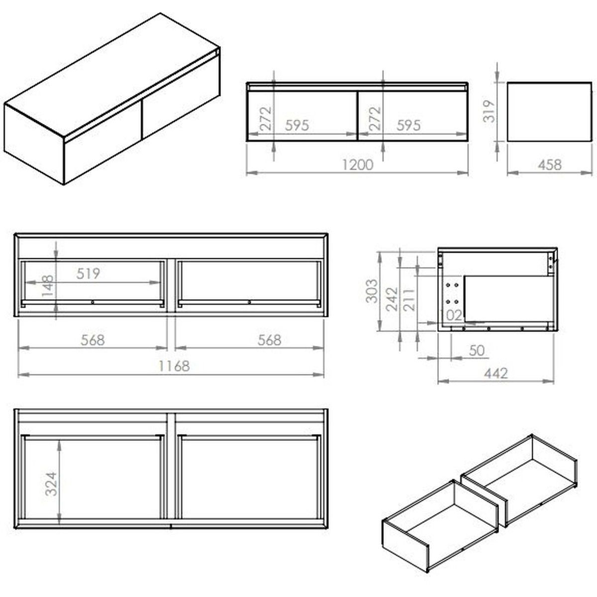 Nella parte anteriore, l'occhio è attratto dalla maniglia profilata a 45°, che si trova su tutta la lunghezza del mobile.