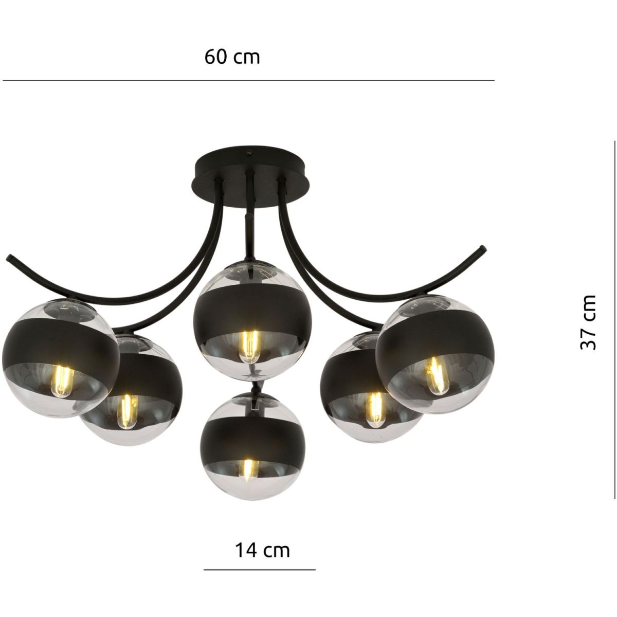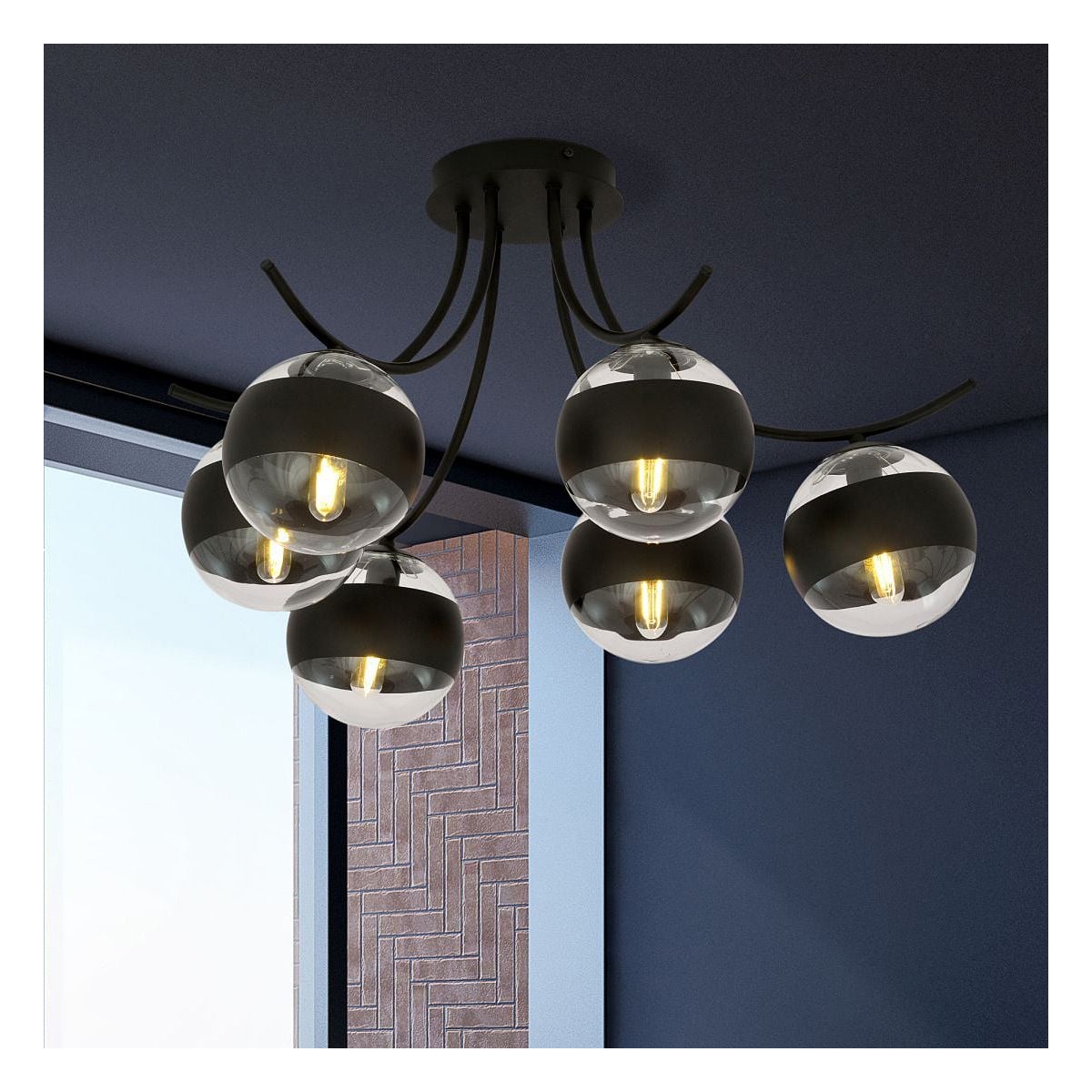 Emibig Boston Stripe lampada da soffitto 6x10 W nero-trasparente 1111/6