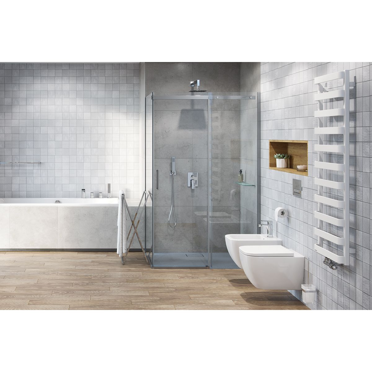 - montaggio su piastrelle o a filo pavimento