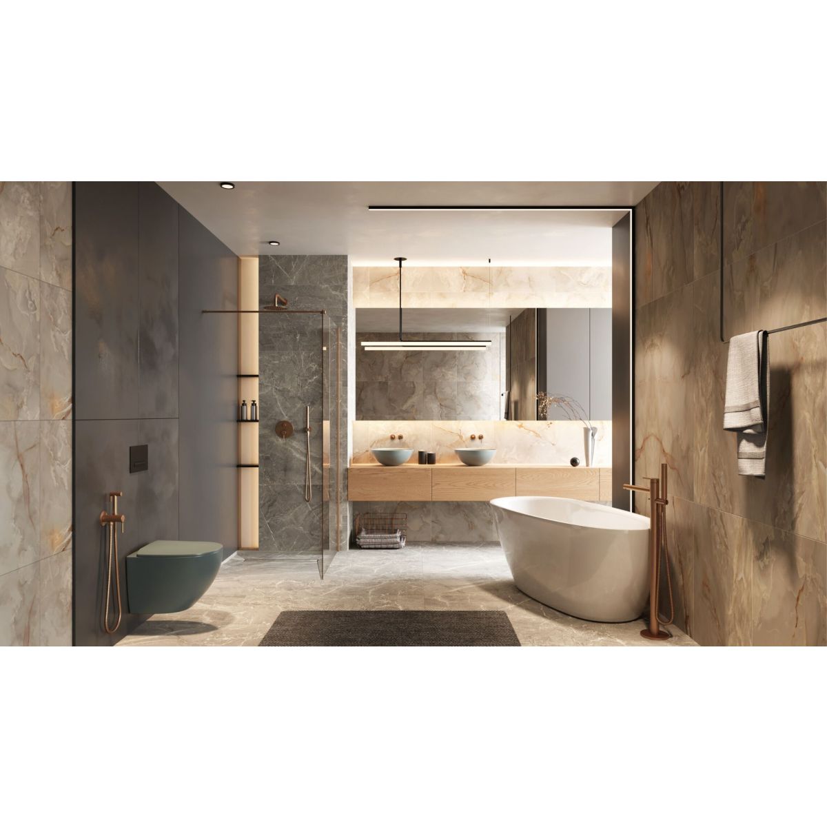 Disponibile in ben 7 eleganti colori - dal classico bianco lucido, all'elegante nero opaco, alle originali tonalità di blu menta e terracotta in finitura opaca - il vaso Luqa si adatta perfettamente a qualsiasi design del bagno.