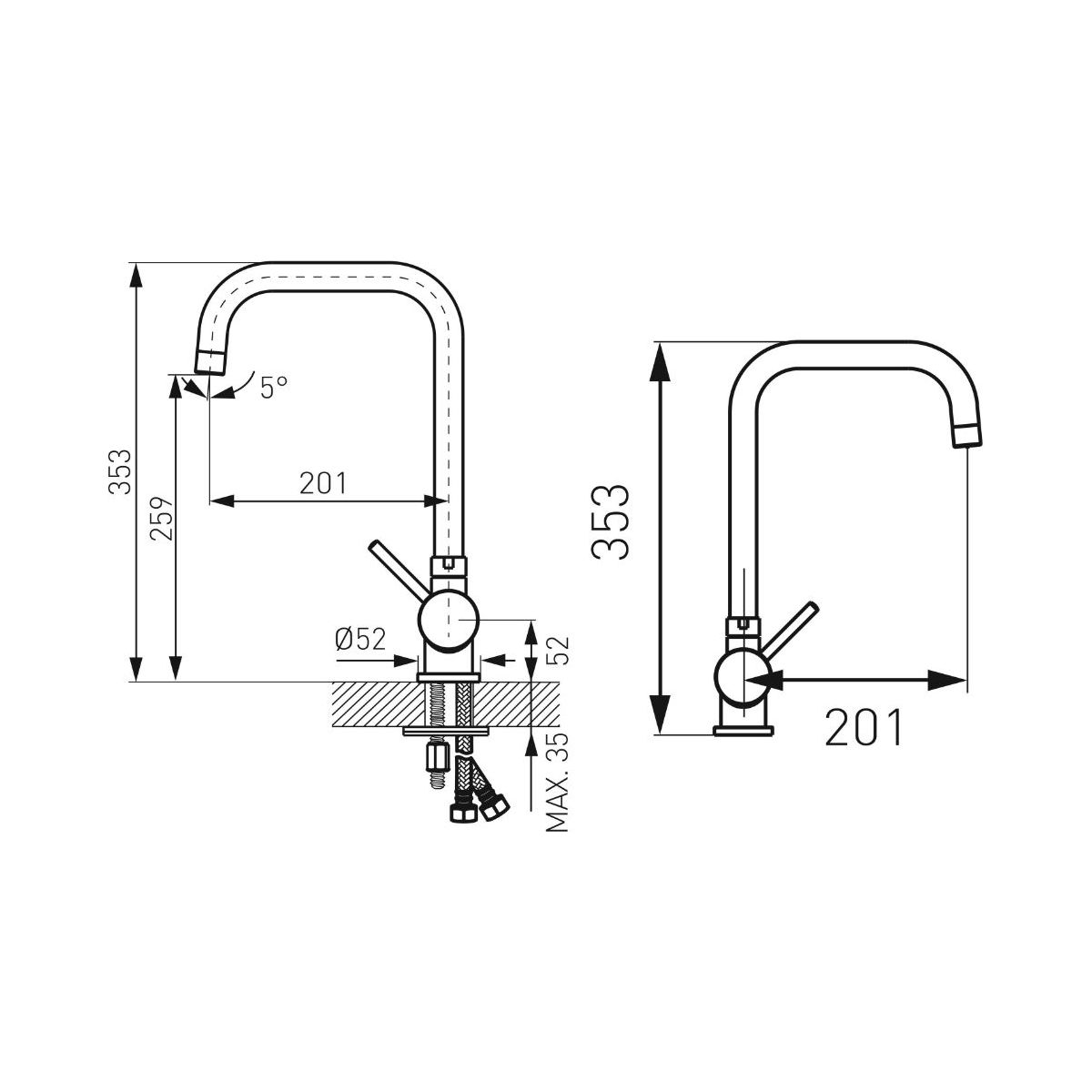 Il miscelatore è dedicato ai lavelli posti sotto la finestra. Ha una caratteristica maniglia sottile e una bocca lunga e ricurva. La bocca è girevole, il che garantisce comodità durante il lavaggio e facilita il riempimento delle stoviglie con l'acqua. Inoltre, può essere facilmente ripiegato in modo da rendere comoda l'apertura e la chiusura della finestra. Degno di nota è anche il design moderno del rubinetto, accentuato dalla bella cromatura.