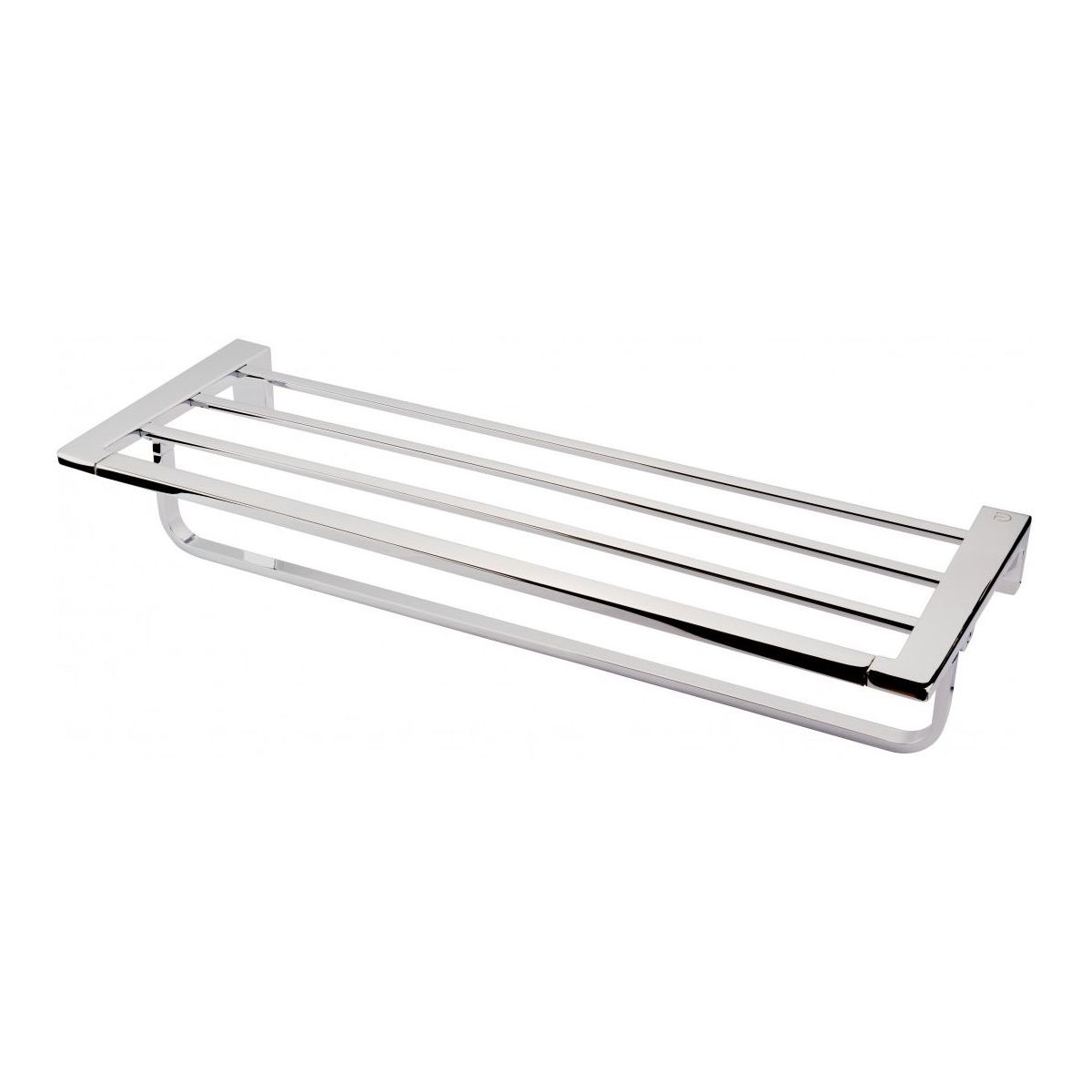 L'appendino per asciugamani con ripiano ha una forma austera e semplice, basata su un motivo rettangolare, ma spezzata da linee delicate e affusolate. Il modello è caratterizzato da una lavorazione meticolosa e la cromatura ne accresce l'eleganza. Si inserisce perfettamente in un contesto di altri accessori cromati della stessa serie, collocati in ambienti che vanno dal classico all'industriale. È anche un esempio di soluzione funzionale due in uno. Il pratico ripiano si rivelerà un buon posto per gli asciugamani di riserva, mentre il binario inferiore sarà perfetto per appendere l'asciugamano in uso.