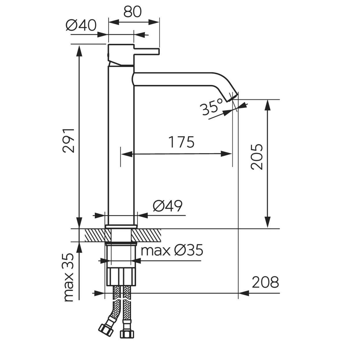 - Altezza del rubinetto [mm]: 291