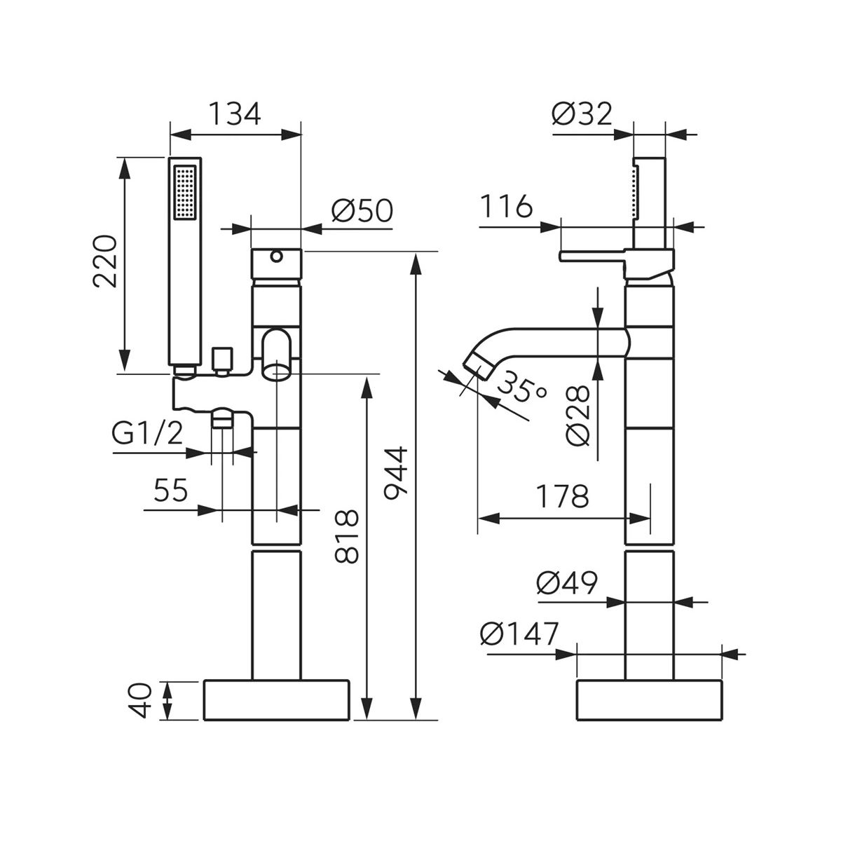 - Lunghezza dell'impugnatura della doccia [mm]: 220