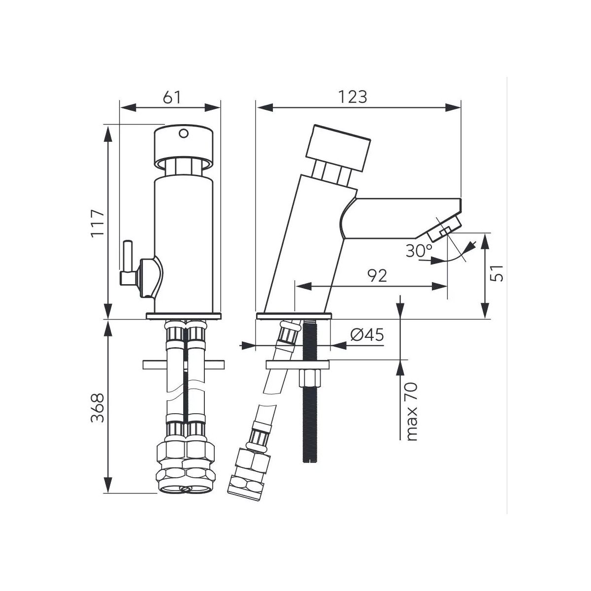 - altezza del rubinetto: 11,7 cm