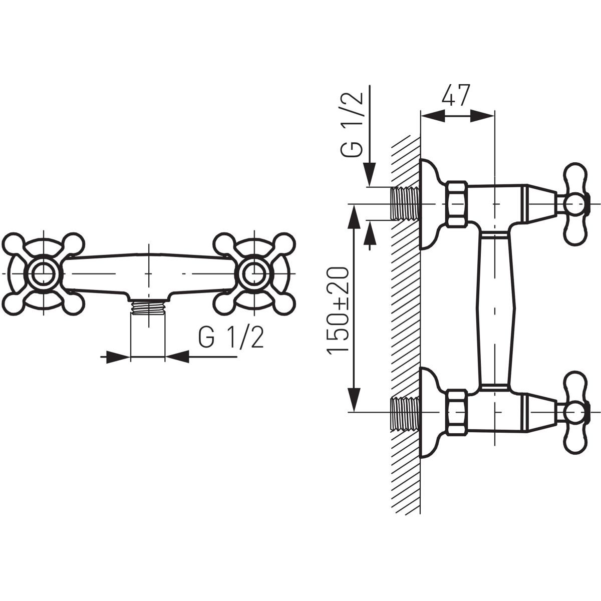 - attacco eccentrico G ½ interasse 150 ± 20 mm