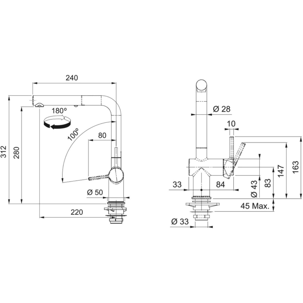 - altezza fino all'estremità dell'erogatore: 31,2 cm