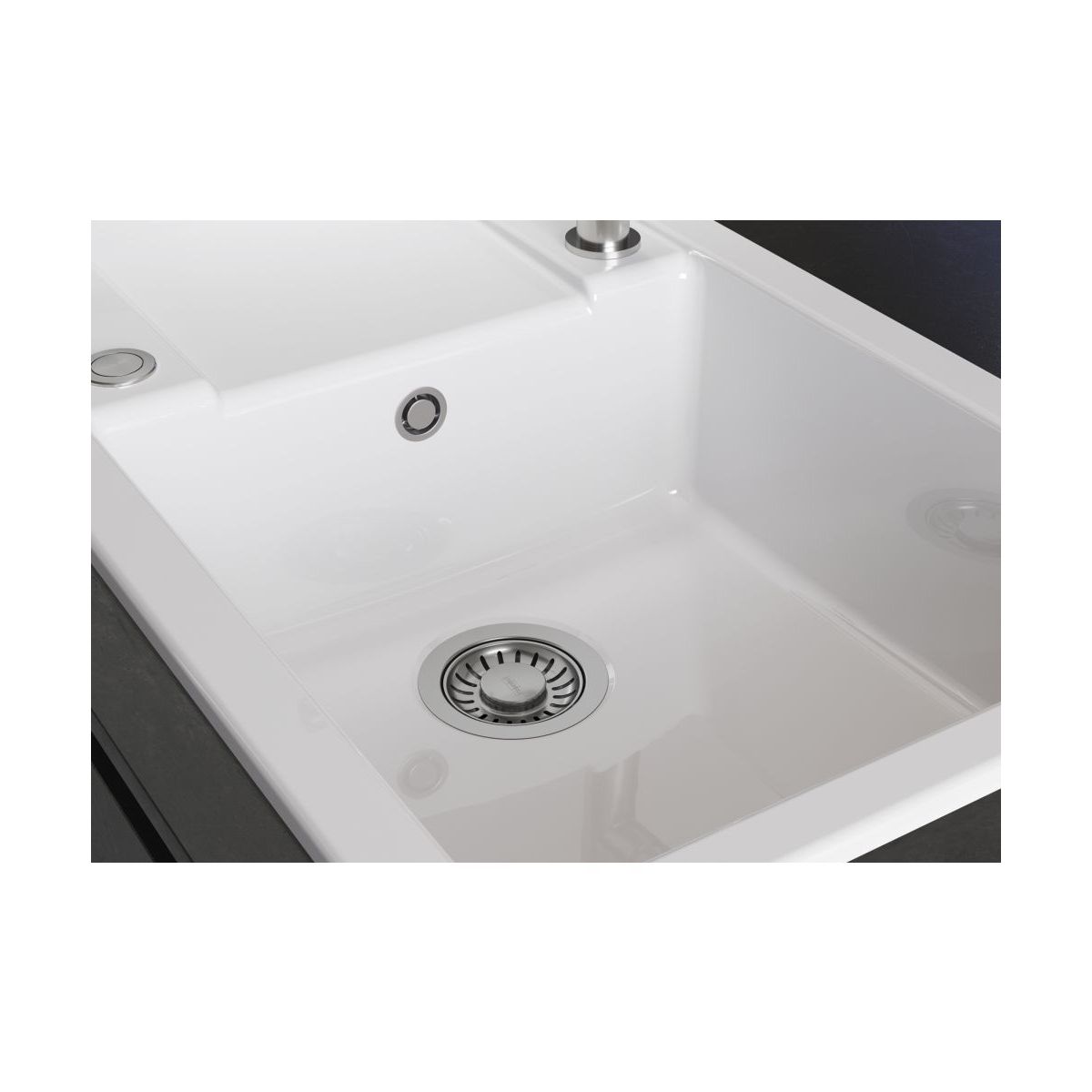 Il lavello da incasso Franke Maris MXK 611-100 è una combinazione di forme eleganti e geometriche e alta funzionalità. Lo scolapiatti è perfetto per appoggiare le stoviglie, scongelare gli alimenti o posare pentole bollenti, mentre il troppopieno nascosto sottolinea l'aspetto moderno dell'intera zona lavaggio. Il modello è realizzato in Fraceram, un materiale estremamente resistente che sopporta ottimamente le alte temperature, gli sbalzi termici e l'uso quotidiano. La superficie liscia facilita la pulizia e impedisce l'accumulo di sporco. Il set include un tappo automatico con filtro da 3 1/2", azionato da un elegante pulsante in acciaio inossidabile, che garantisce un utilizzo comodo e igienico.