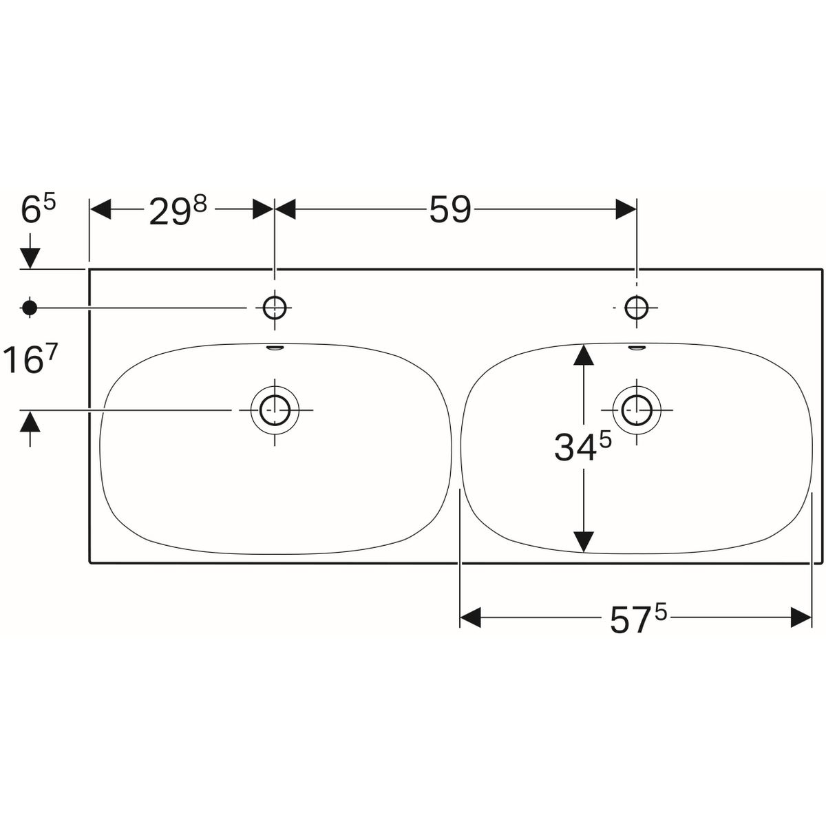 - dimensioni del lavabo: 2 x 57,5 x 34,5 cm