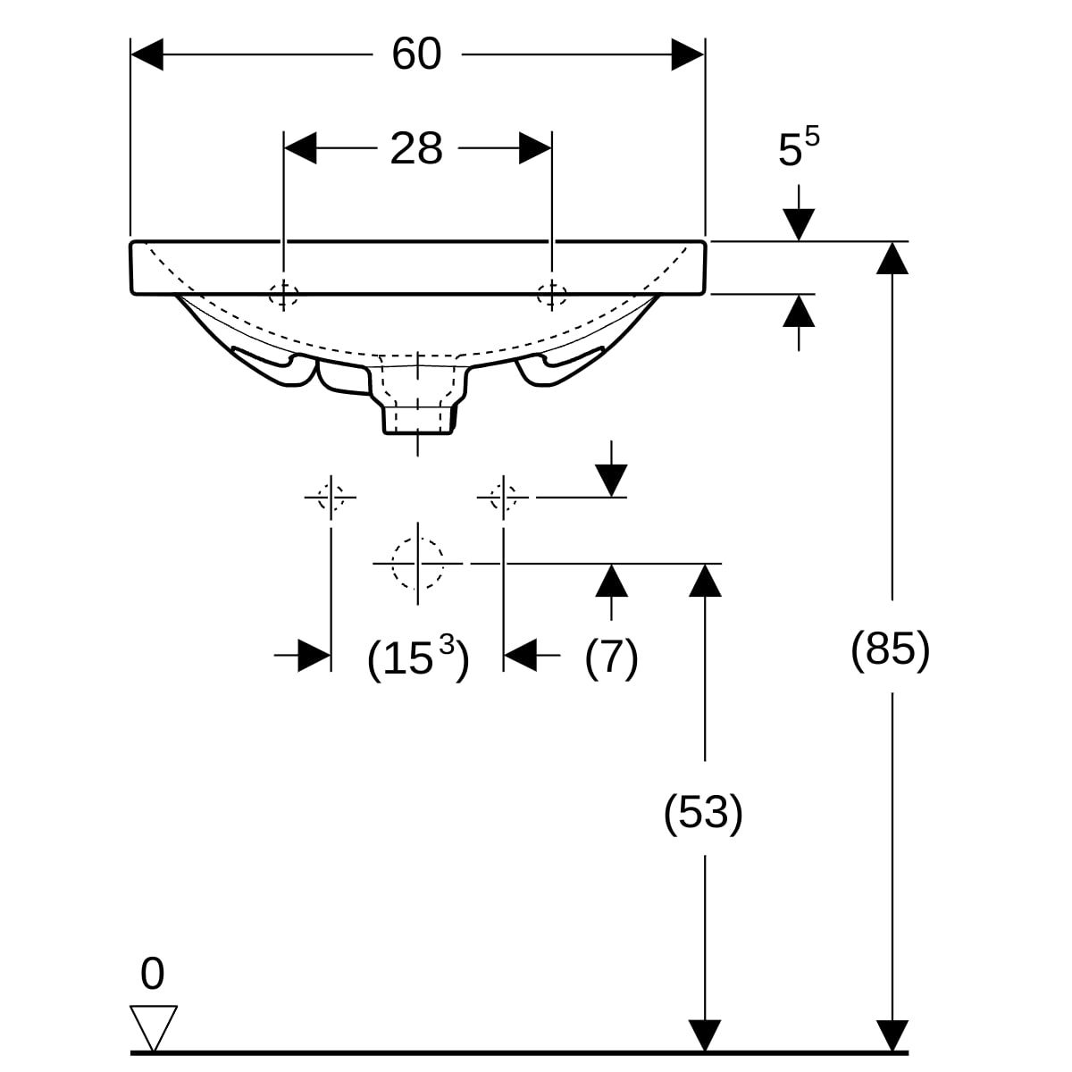 Geberit Acanto lavabo 60x42 cm rettangolare a parete-da mobile-da incasso bianco 500.631.01.2