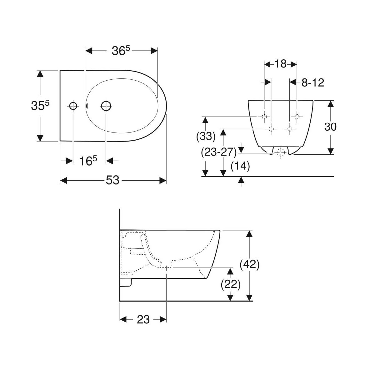 - facile installazione con il distanziatore per bidet Geberit EFF3
