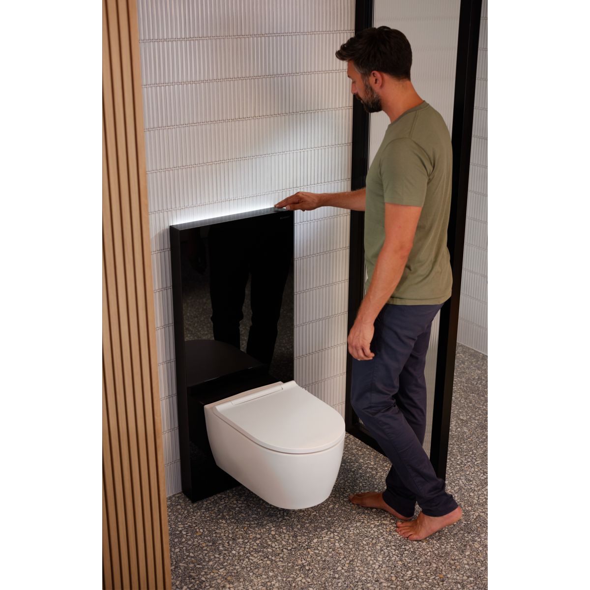 Il vaso Geberit ONE è una delle migliori toilette disponibili sul mercato. Il suo design intramontabile e la sua struttura semplice soddisfano l'occhio in bagno per anni e non annoiano mai. Utilizza le più recenti tecnologie Geberit, tra cui il TurboFlush, il primo sistema di risciacquo a gorgogliamento brevettato. La toilette è stata trattata con lo speciale smalto KeraTect, che riduce la porosità della superficie e impedisce allo sporco di depositarsi su di essa. Il vaso è dotato di sedile flottante con cerniere facili da rimuovere: basta aprire il sedile per rimuoverlo facilmente e pulire la superficie del vaso. Abbinare questa toilette a un telaio Geberit Duofix significa ottenere il sistema WC Geberit: una combinazione unica di telaio e toilette Geberit, che offre una qualità di risciacquo fino a 10 volte migliore e un silenzio assoluto ogni volta che si preme il pulsante di risciacquo.
