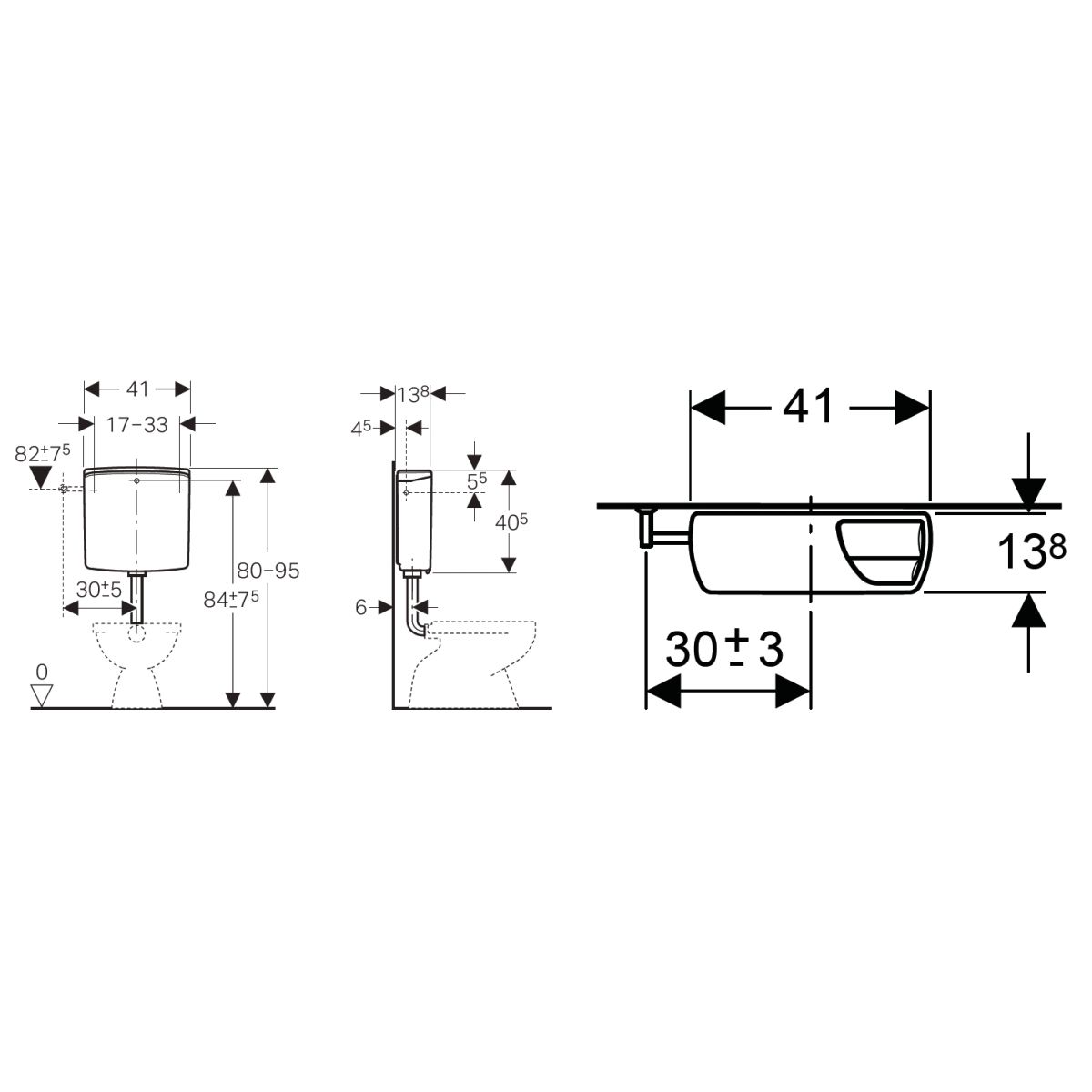 - campo di regolazione per il risciacquo con piccole quantità d'acqua 3-4 l