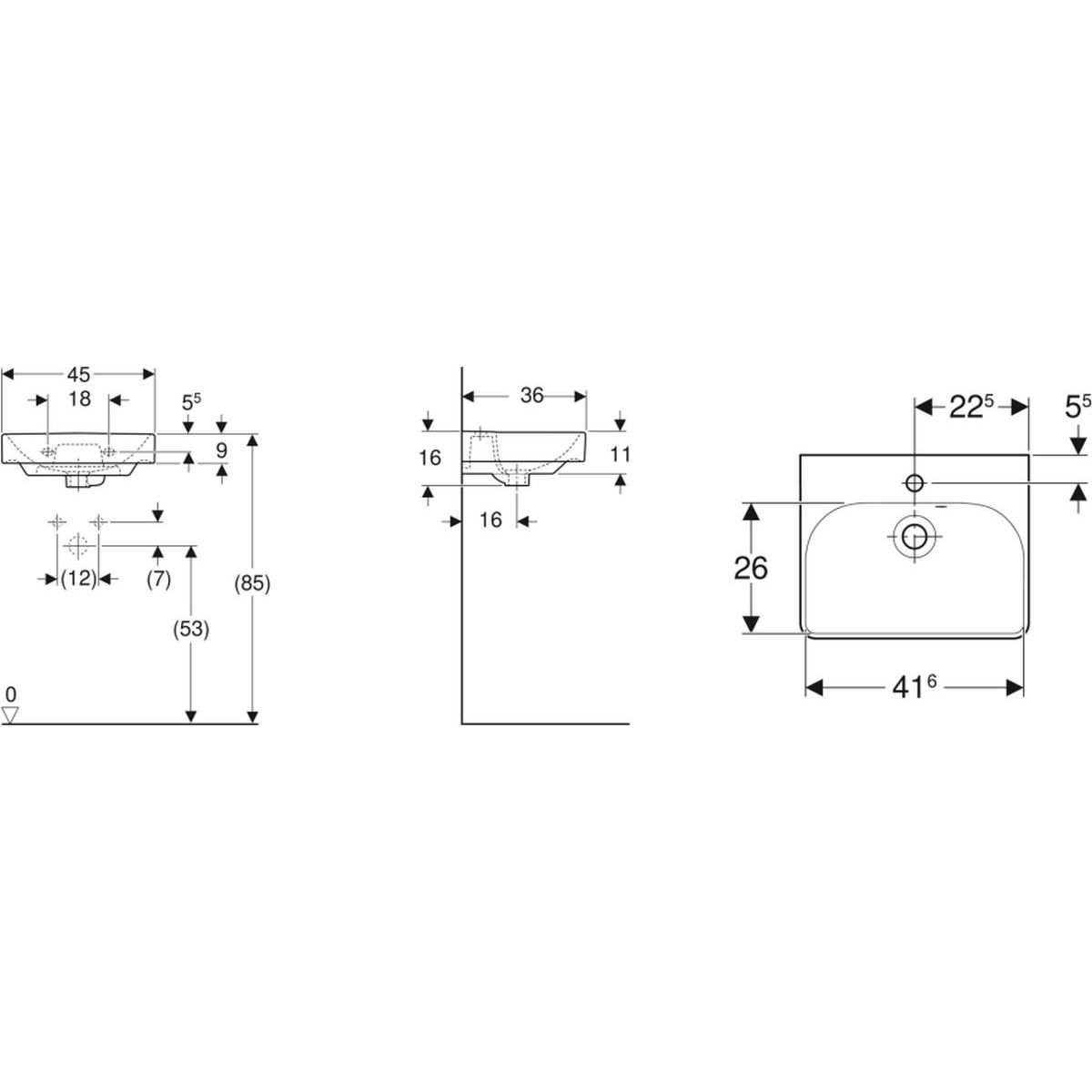 Geberit Smyle Square lavabo 45x36 cm rettangolare a parete-da mobile-da incasso bianco 500.222.01.1