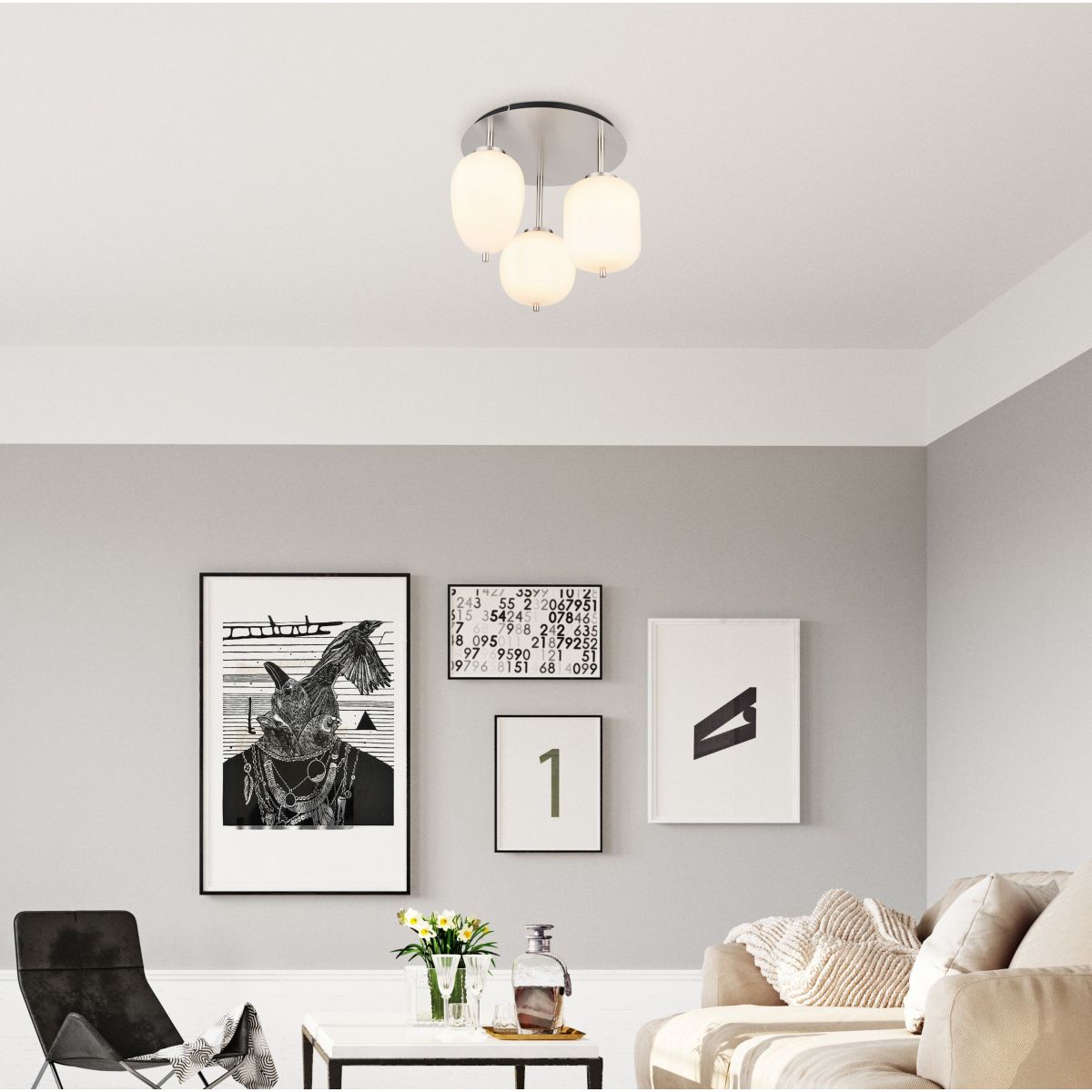 Globo Lighting Blacky I lampada da soffitto 3x40 W vetro opalino-nichel 15345-3DNO