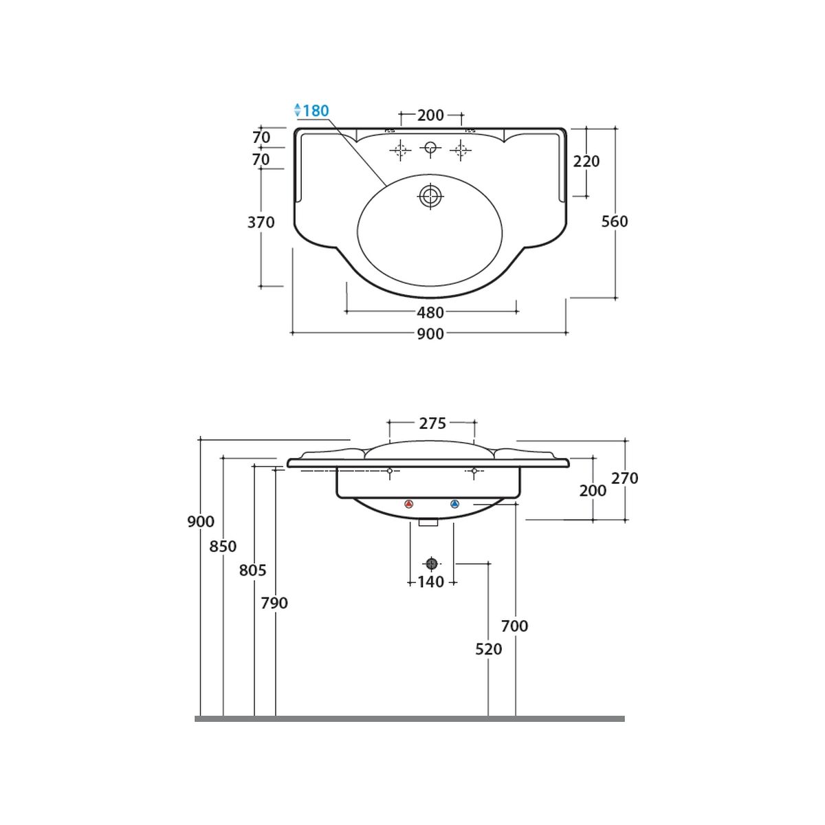 Il prezzo si riferisce al lavabo con un foro per la rubinetteria.