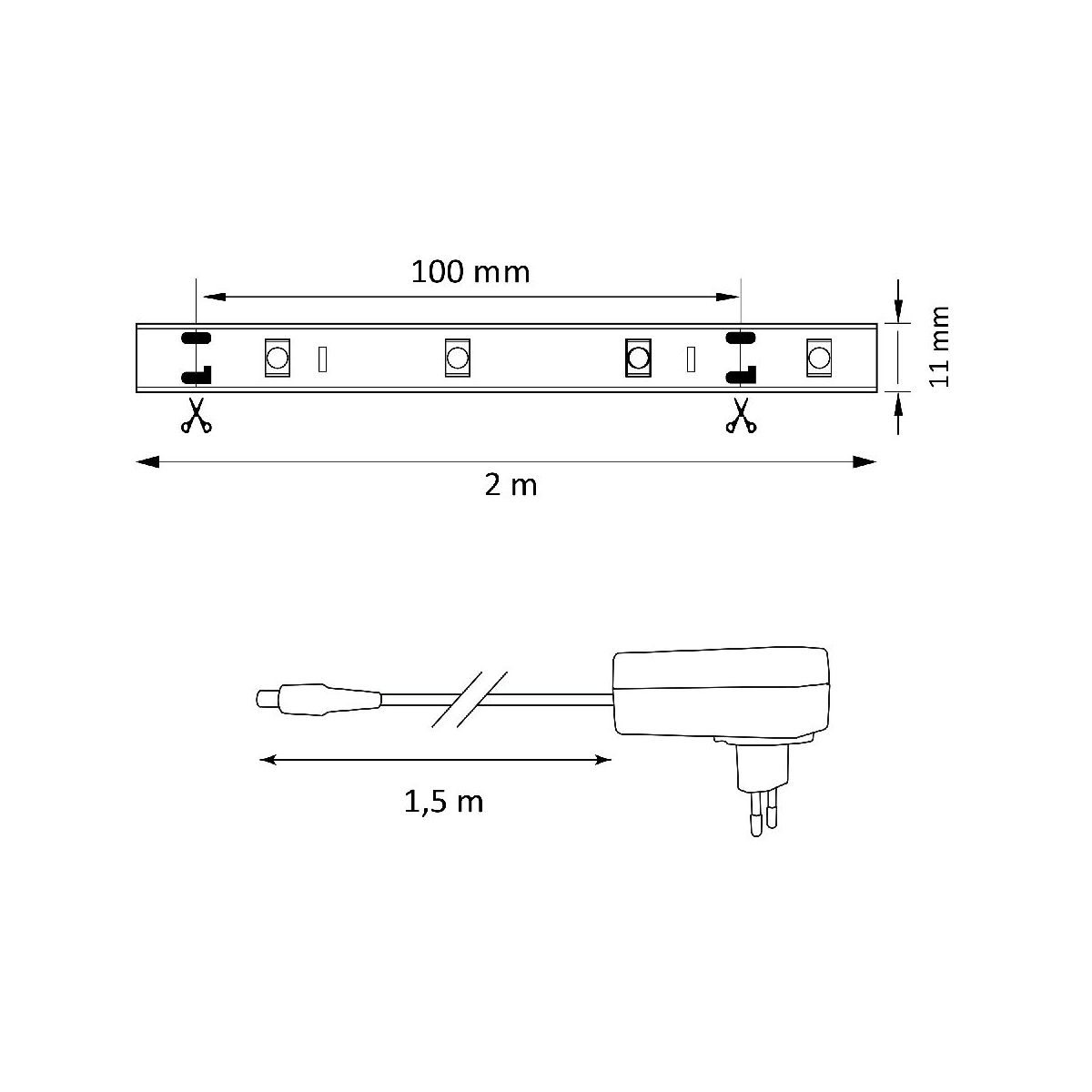 - il set comprende una striscia LED di 2 m, un controller, un telecomando (batteria inclusa), un alimentatore per strisce LED da 12 V, 1 A, 12 W, un manuale di istruzioni