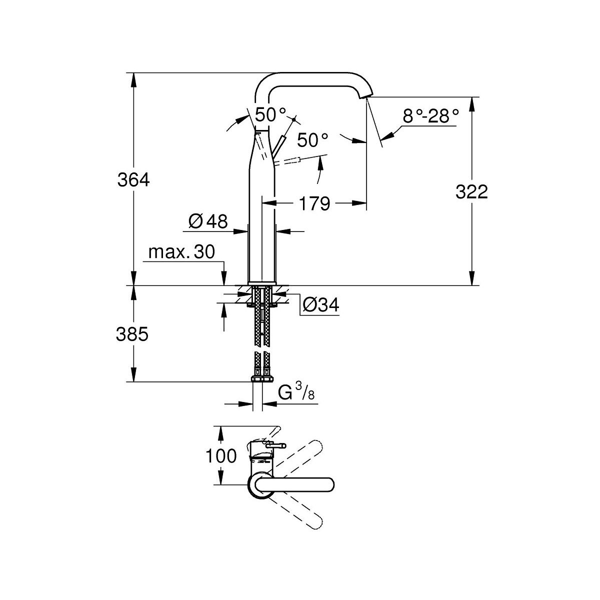 Il miscelatore per lavabo Grohe Essence è stato creato per l'installazione su lavabi freestanding e convince per il connubio tra design elegante, funzionamento confortevole e affidabilità. Il suo corpo cilindrico e sottile confluisce armoniosamente nella bocca di erogazione dolcemente ricurva, il cui angolo di rotazione può essere bloccato in una delle tre gamme: 0˚, 150˚, 360˚. L'intero rubinetto è rivestito da un elaborato rivestimento scuro in grafite dura, che risalta sulla ceramica chiara e accentua meravigliosamente l'arredamento di un ambiente industriale. Per garantire che l'uso del miscelatore sia sempre fluido e preciso nel corso degli anni, è dotato della cartuccia ceramica Grohe SilkMove. La sua affidabilità è stata apprezzata da milioni di utenti in tutto il mondo, così come l'equilibrio perfettamente bilanciato tra prestazioni e risparmio fornito dal limitatore di portata Grohe EcoJoy. Riduce il consumo d'acqua a soli 5,7 litri/minuto, contribuendo a un significativo risparmio sul bilancio familiare. È stata inoltre prestata attenzione alla possibilità di regolare perfettamente l'angolo di spruzzo in base alla forma della ceramica: è sufficiente utilizzare l'aeratore regolabile AquaGuide, è così semplice! Scoprite la combinazione di design elegante e affidabilità funzionale e scegliete il miscelatore per lavabo Grohe Essence.