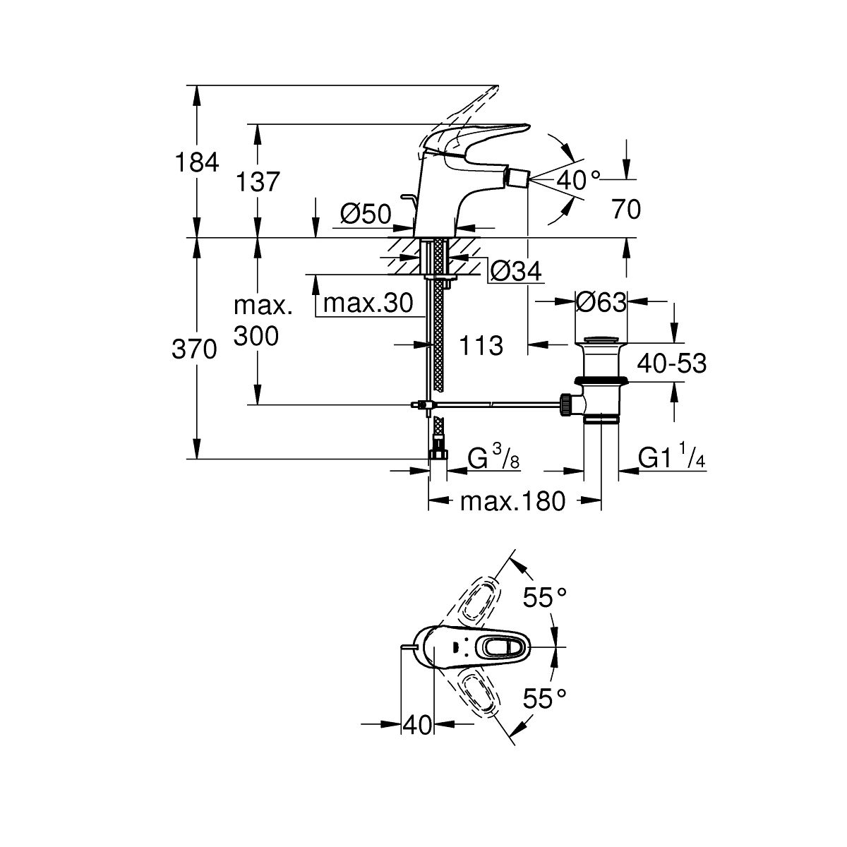 Grohe Eurostyle New rubinetto per bidet verticale StarLight Chrome 33565003