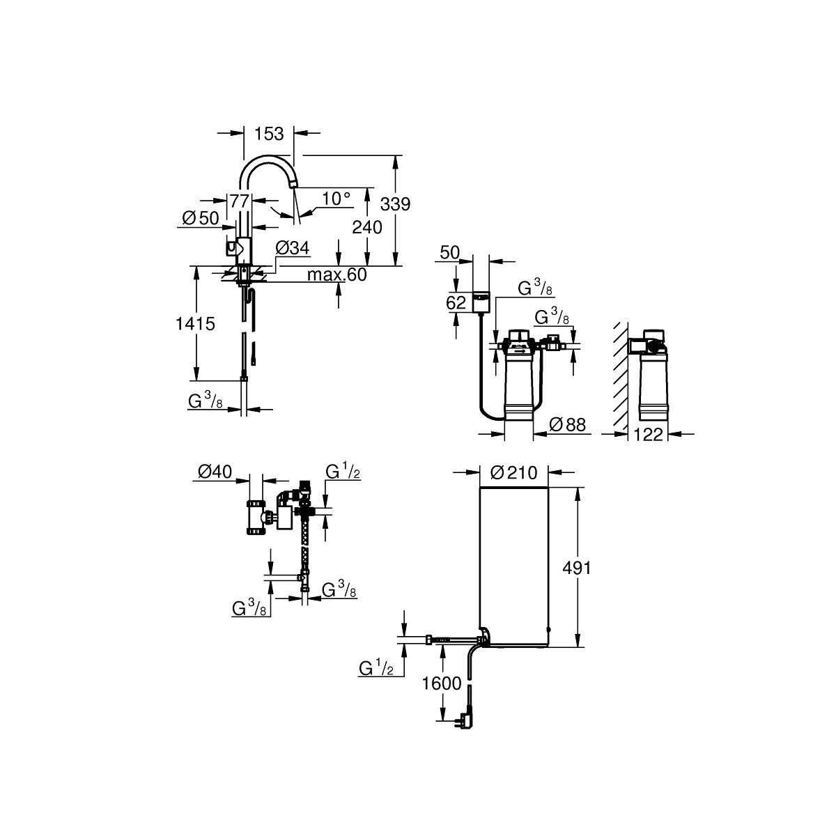 - collegamento alla caldaia Grohe Red