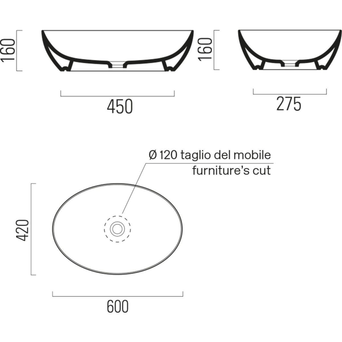 GSI Pura lavabo 60x42 cm ovale da appoggio nero 884226