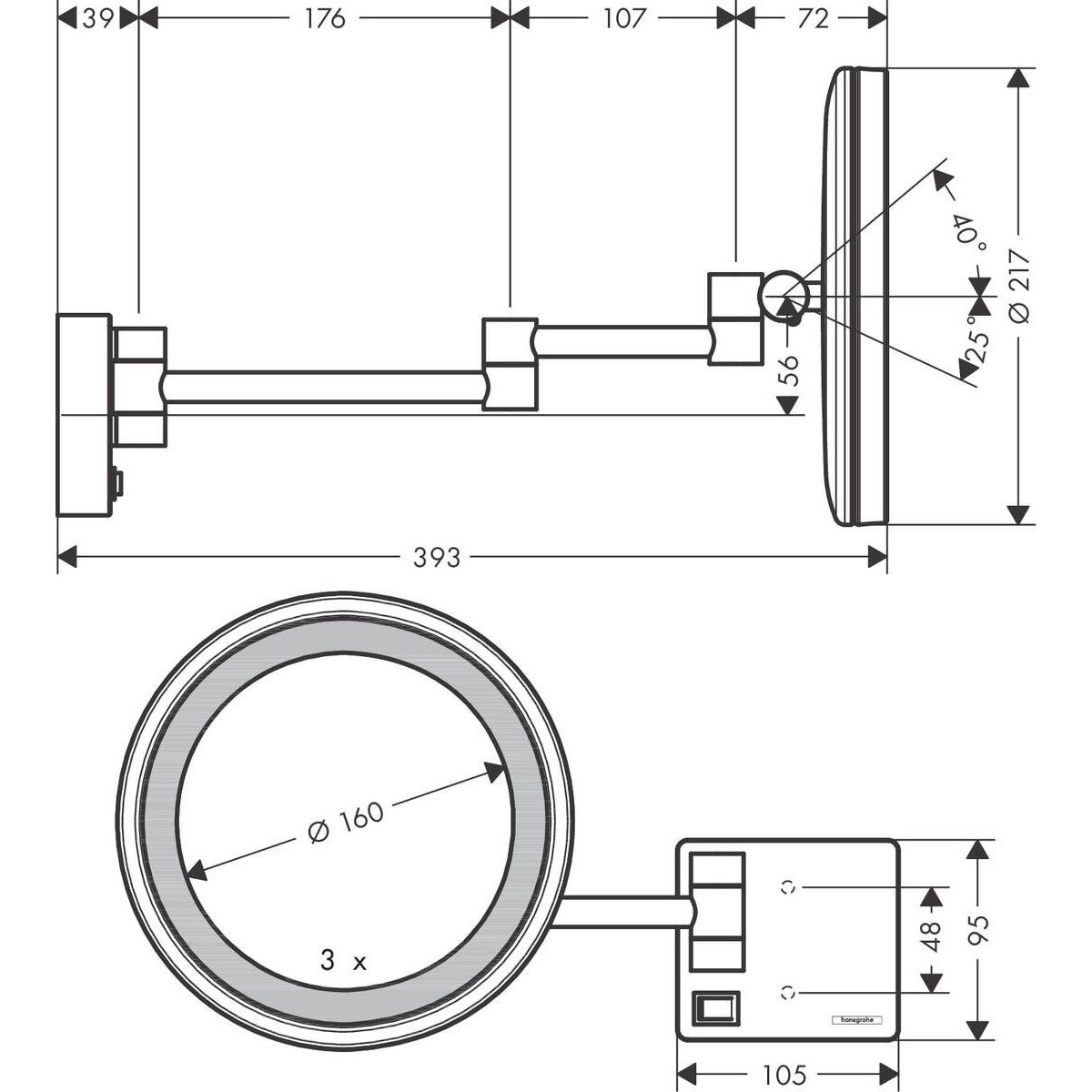 Hansgrohe AddStoris specchietto per trucco 21.7x21.7 cm rotonda con illuminazione cromo 41790000