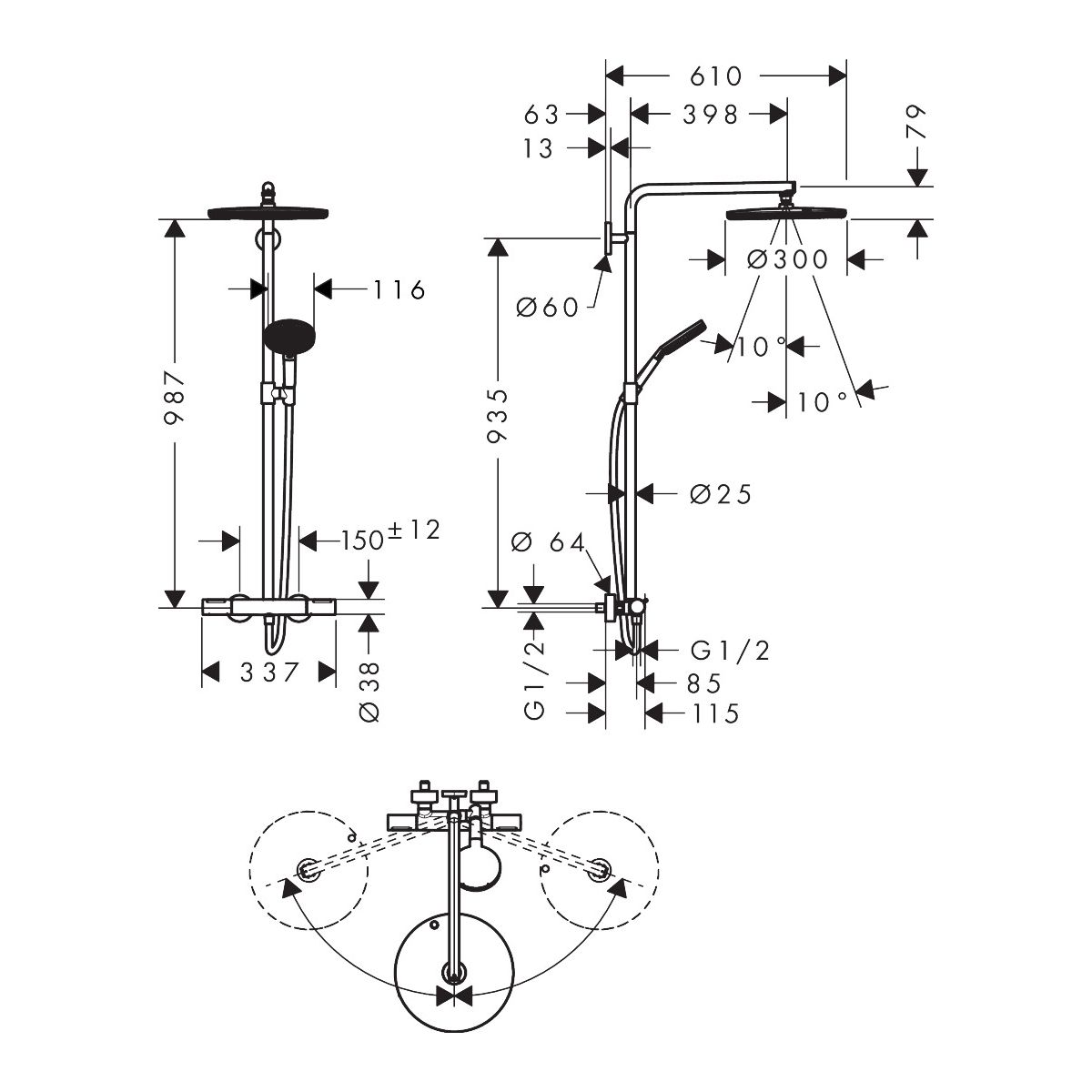 - dimensioni del soffione: 300 mm