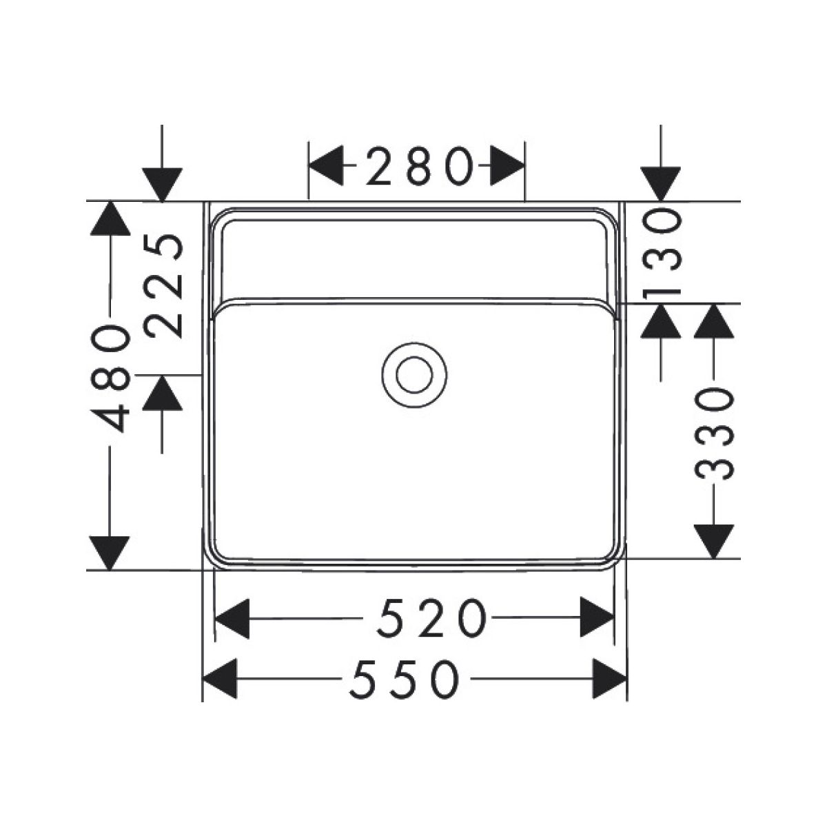 Posizione della vasca del lavabo: al centro