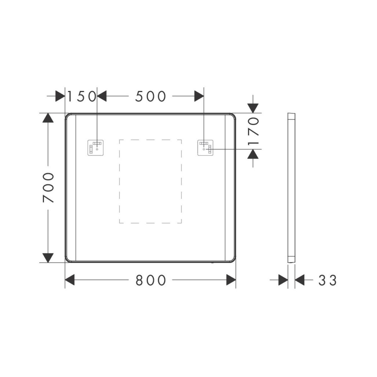 Hansgrohe Xarita Lite Q specchio 80x70 cm rettangolare con illuminazione con tappetino riscaldante nero 54976670