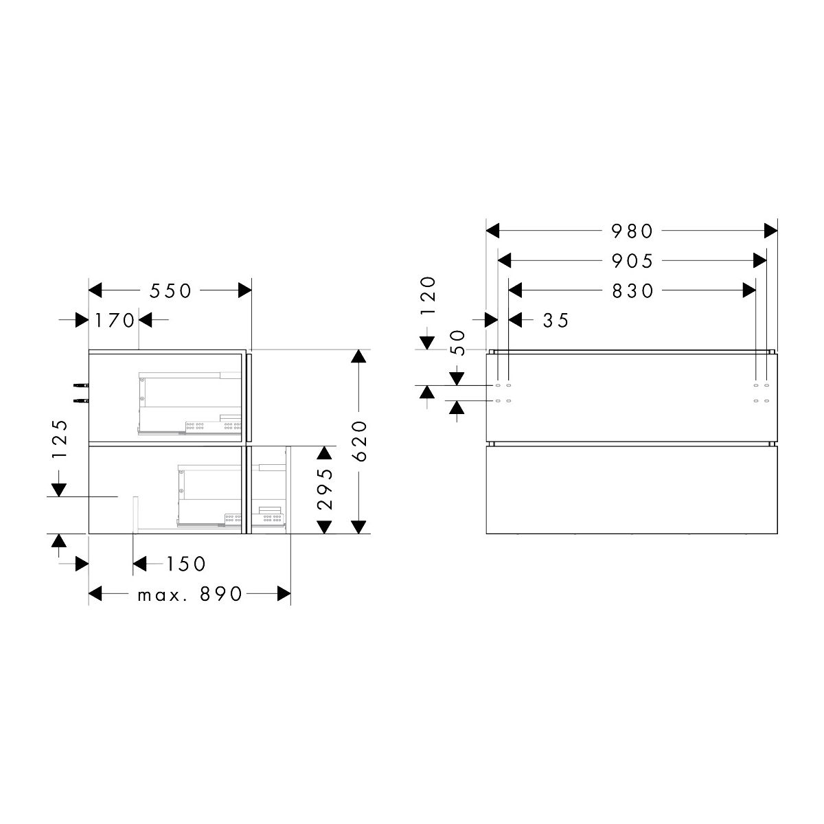 - è necessario un sifone salvaspazio (n. 54235000) da ordinare separatamente