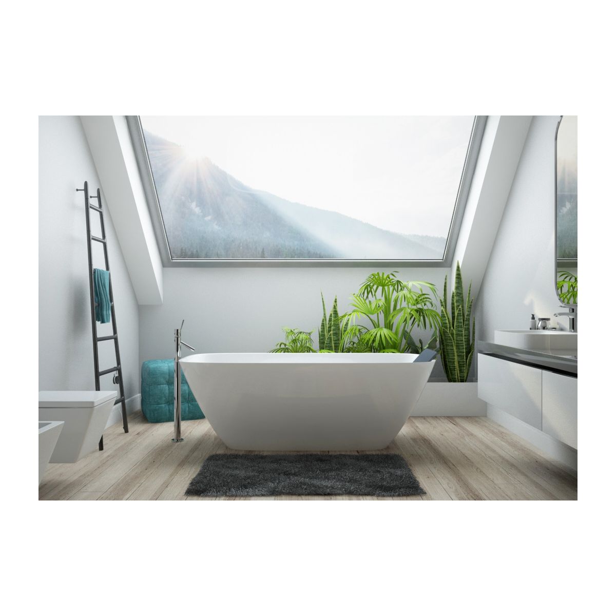 La vasca ovale freestanding completa comprende: sistema di troppopieno integrato, sistema di scarico con tappo Klick-Klack, tubo di collegamento per l'installazione.