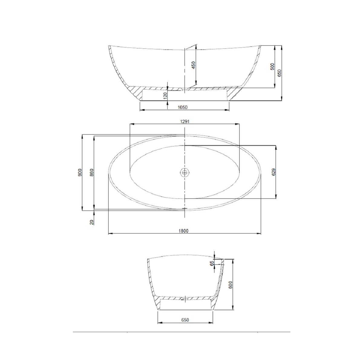 - vasca da bagno autoportante in fusione minerale Solique