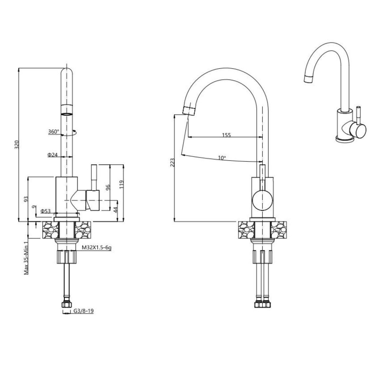 - altezza dal piano di lavoro 320 mm