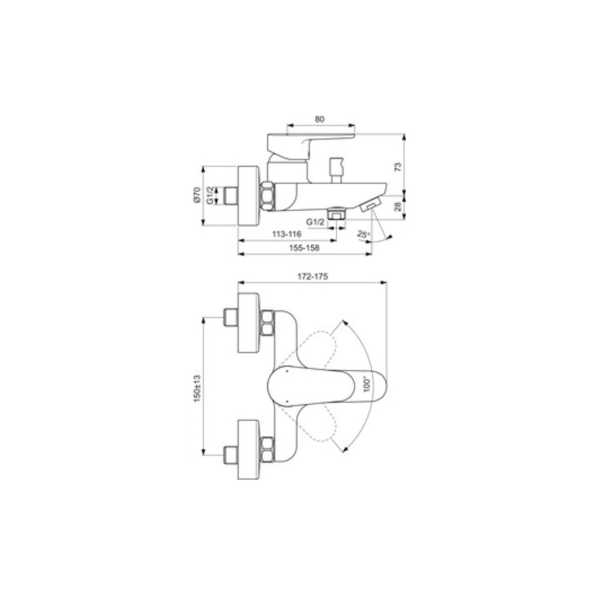 Ideal Standard Cerafine rubinetto per vasca e doccia a parete cromo BC500AA