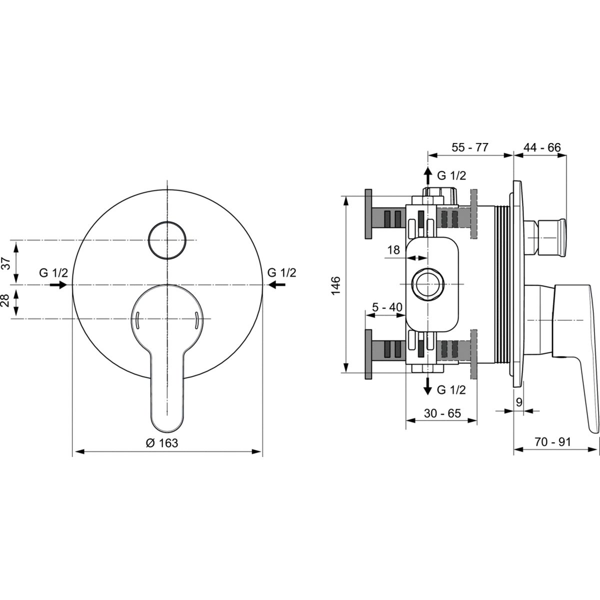 Ideal Standard Ceraplus rubinetto per vasca e doccia da incasso cromo A6866AA