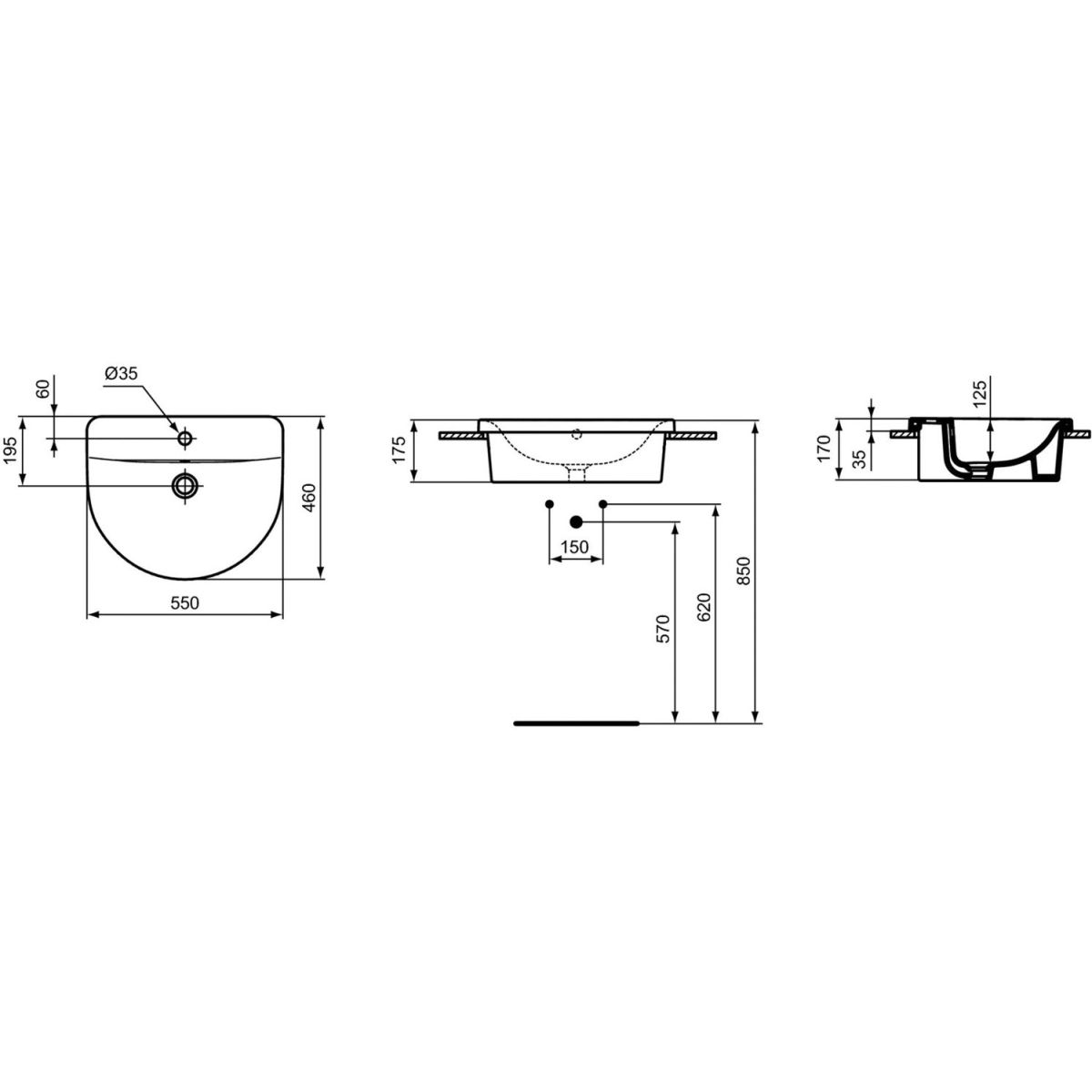 Ideal Standard Connect lavabo 55x46 cm semicircolare da incasso bianco E797801