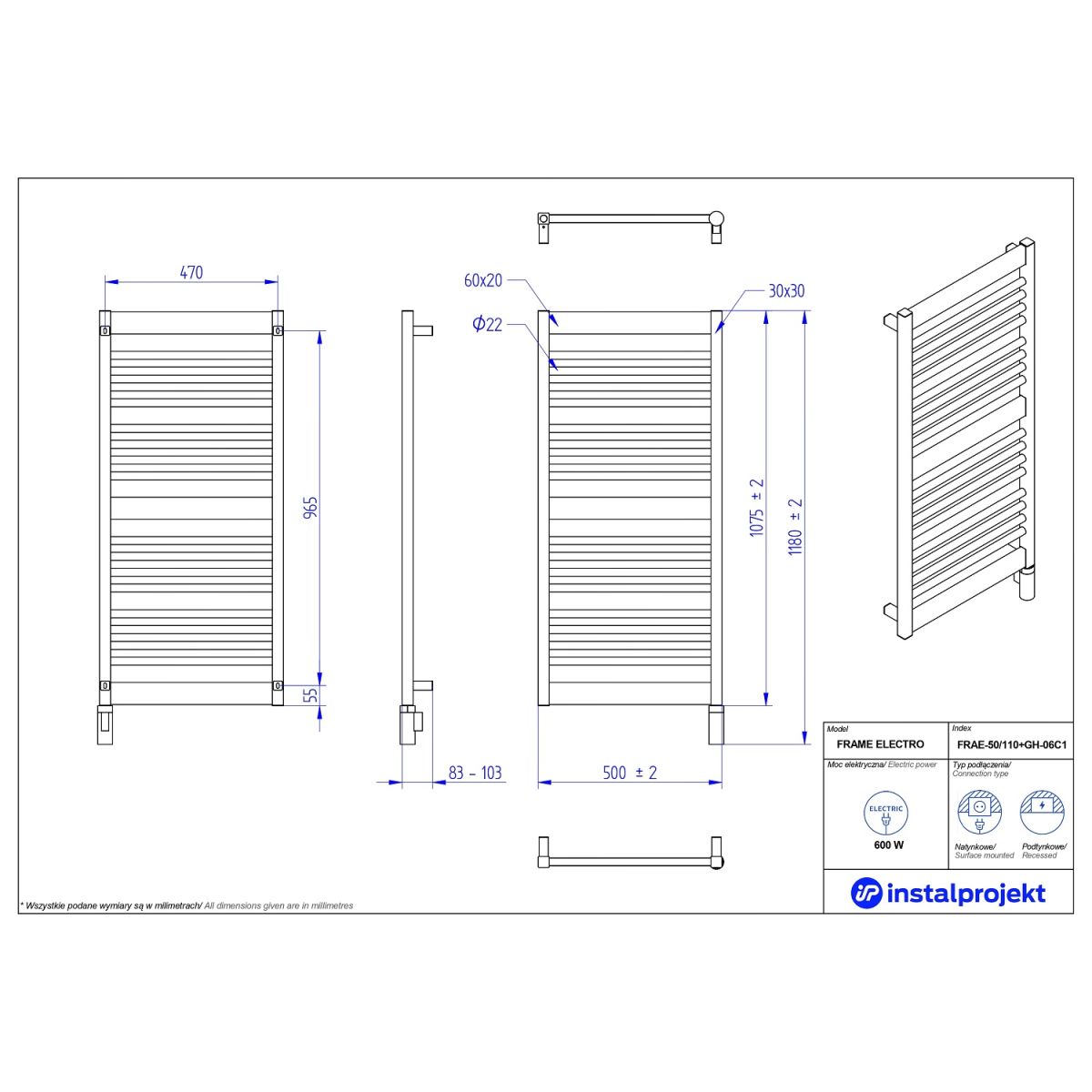 Scegliendo il nostro radiatore elettrico Frame Electro, avrete accesso a soluzioni tecnologiche moderne che non solo garantiranno un riscaldamento e un'asciugatura efficienti dei tessuti in qualsiasi stagione, ma ridurranno anche al minimo i costi di gestione e il rischio di guasti. Questo dispositivo ad alta efficienza energetica si inserisce perfettamente nel contesto degli edifici moderni, dove si utilizzano sempre più spesso pompe di calore, fotovoltaico e riscaldamento a pavimento. Il nostro radiatore è dedicato a bagni, corridoi e ripostigli, e con esso potrete godere di una casa ecologica e confortevole.
