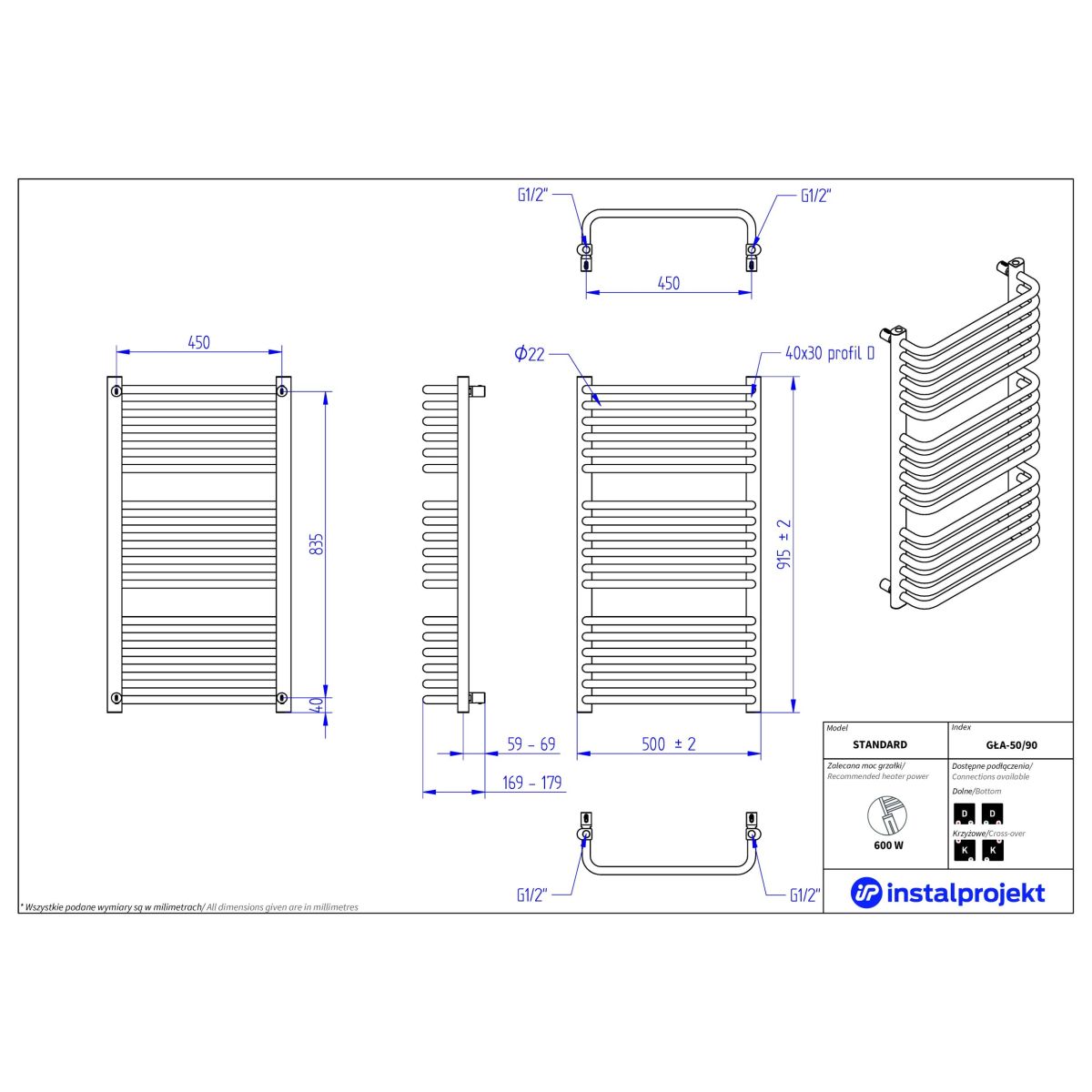 Instal Projekt Standard radiatore da bagno a scaletta 91x50 cm bianco GŁA-50/90