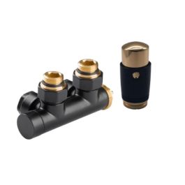 l'esclusivo set termostatico Duoplex nero è progettato per il collegamento di radiatori decorativi per il bagno, ma anche per il collegamento di un radiatore a pannello decorativo alimentato dal basso. È un set reversibile, il che significa che può essere utilizzato con la testa a sinistra o a destra.