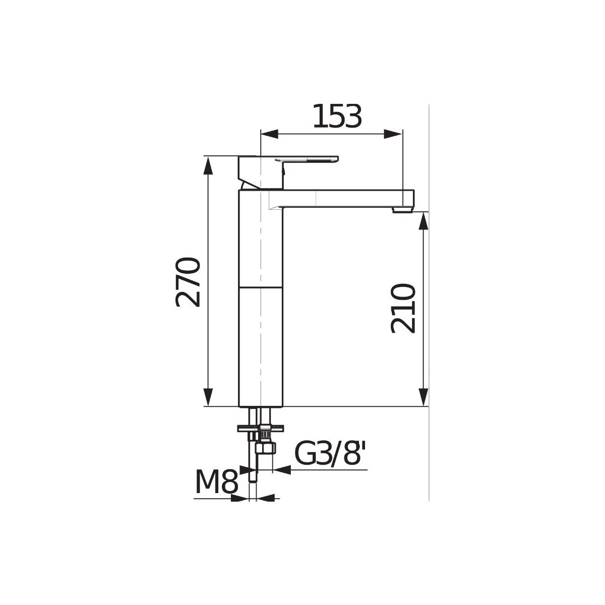 - filettatura di collegamento all'acqua: 3/8"