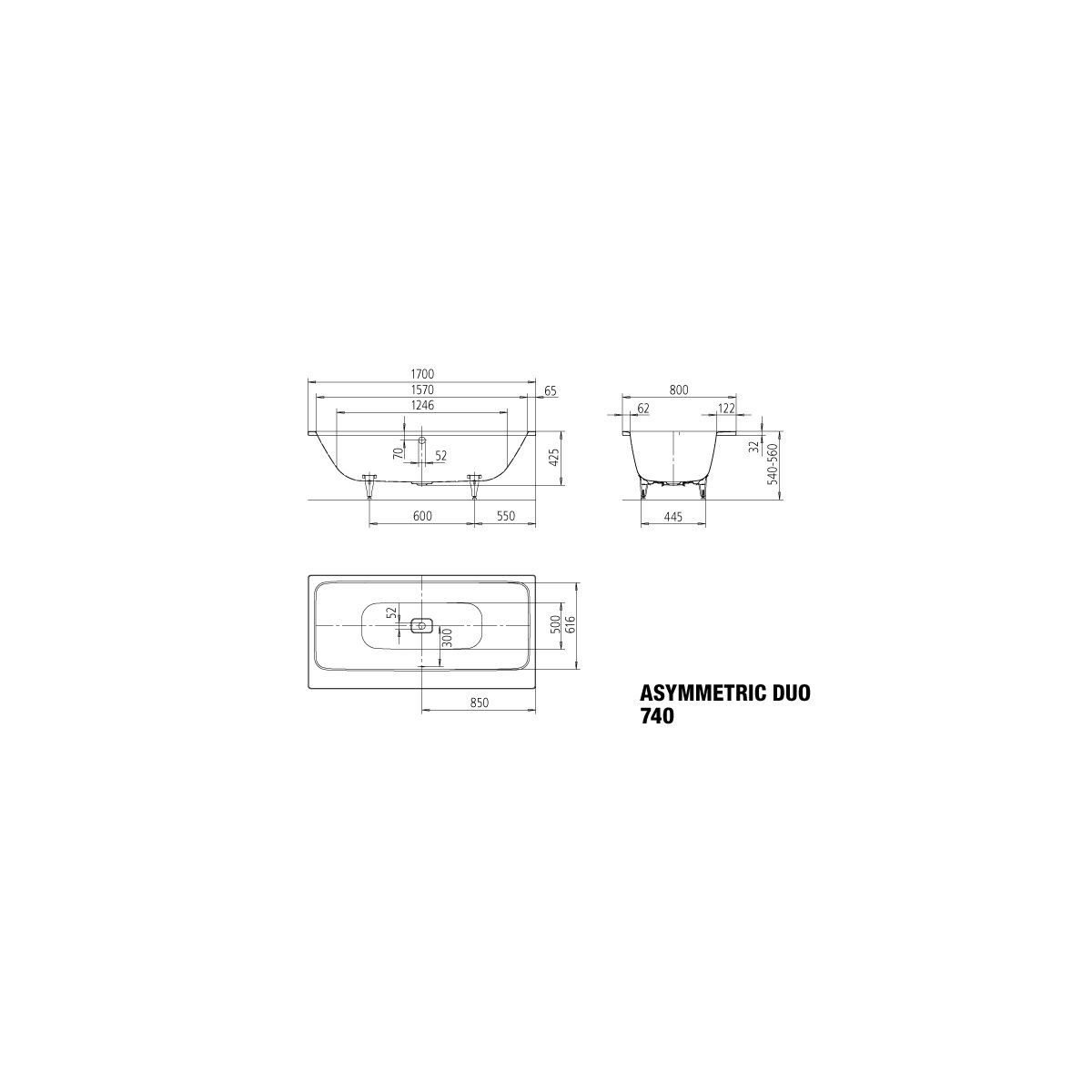 Kaldewei Asymmetric Duo vasca da bagno rettangolare 170x80 cm bianco 274000010001