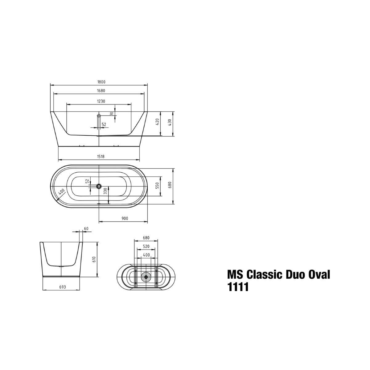 Kaldewei Meisterstück Centro Duo vasca da bagno ovale 180x80 cm ovale bianco 202642670001