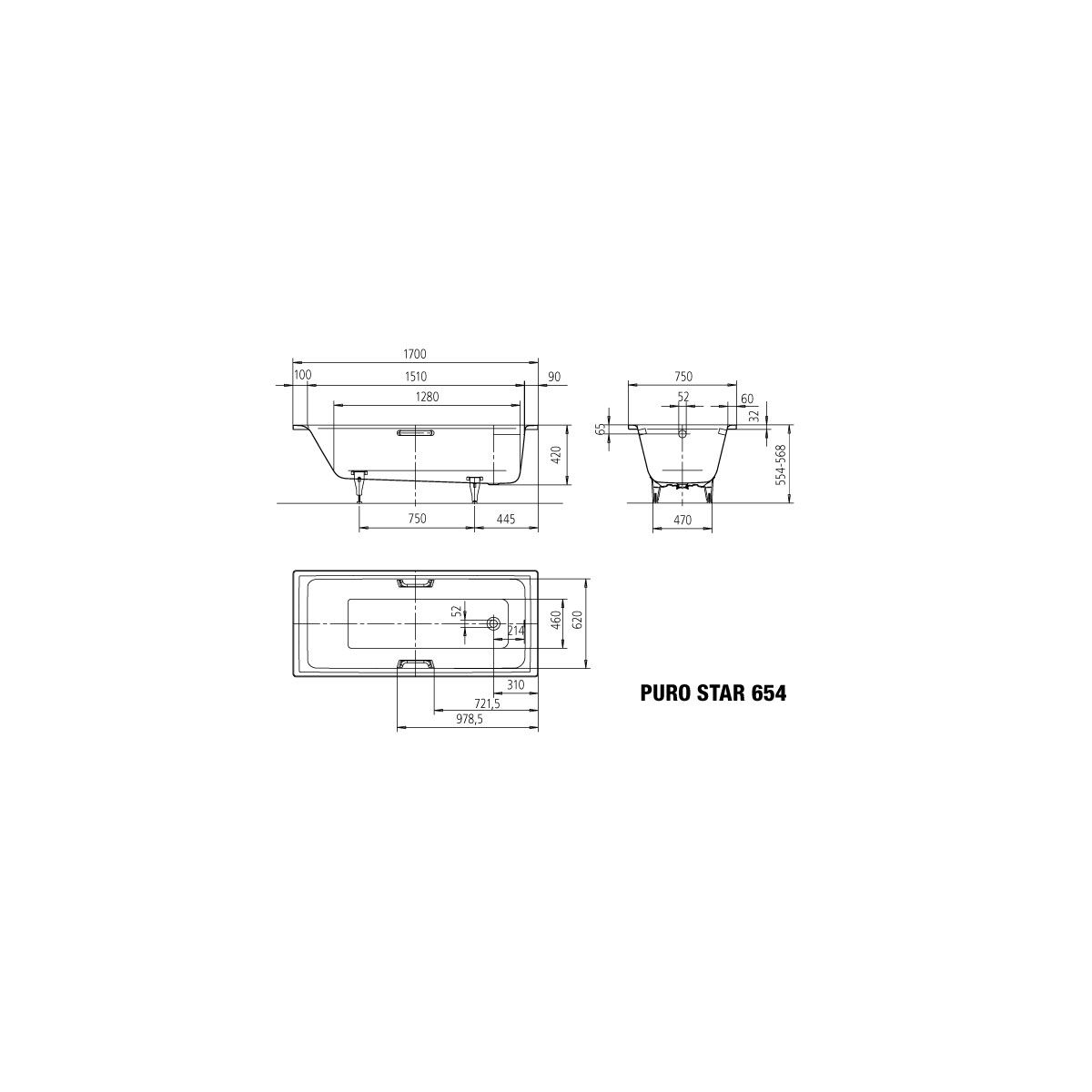 Kaldewei Puro vasca da bagno rettangolare 170x75 cm bianco 255400010001