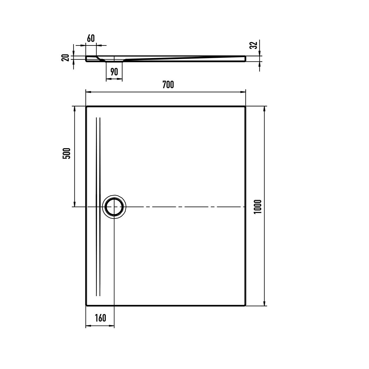 Piatto doccia piatto dal design molto moderno, con lo scarico situato al centro del lato lungo. Area di appoggio spaziosa e omogenea. Può essere abbinato a un coperchio di scarico cromato o a un coperchio di scarico smaltato nel colore del piatto doccia (venduto separatamente).